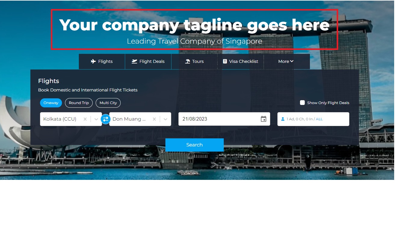 • Banner images: You can add any four banner images, such as of any cheap package or any cheap ticket that you want to highlight.