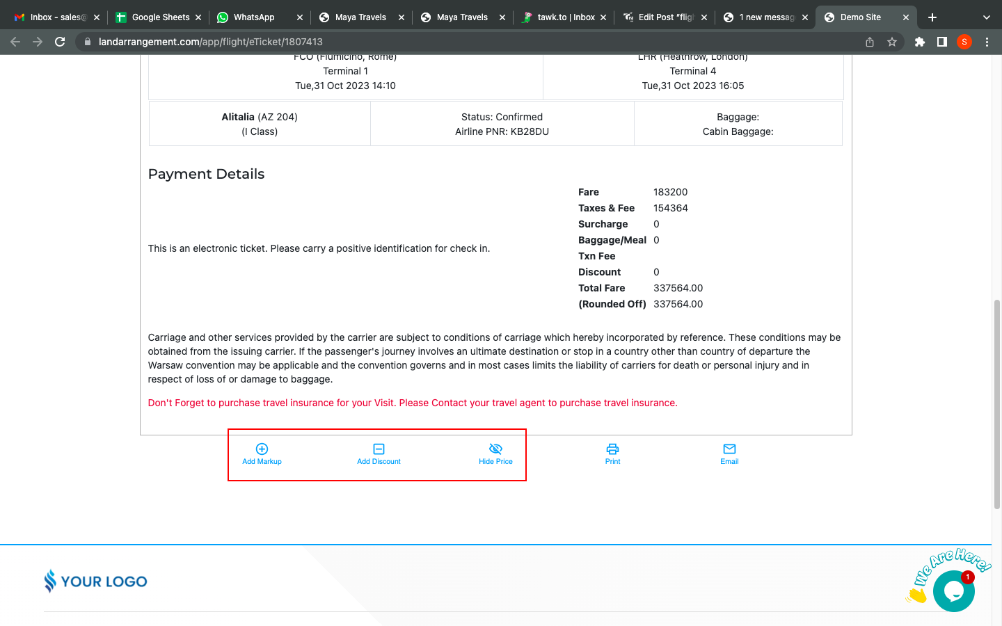Travelwebsite.in offers a broad platform where you and your customers can book flight tickets online hassle-free. You will be getting rates via Maya Travels for flights and can add a markup on that rates (refer to https://blog.travelwebsite.in/setting-markup-for-flights-and-flight-deals/). You can also manipulate the price on print after booking the ticket. The steps to do this are explained further.