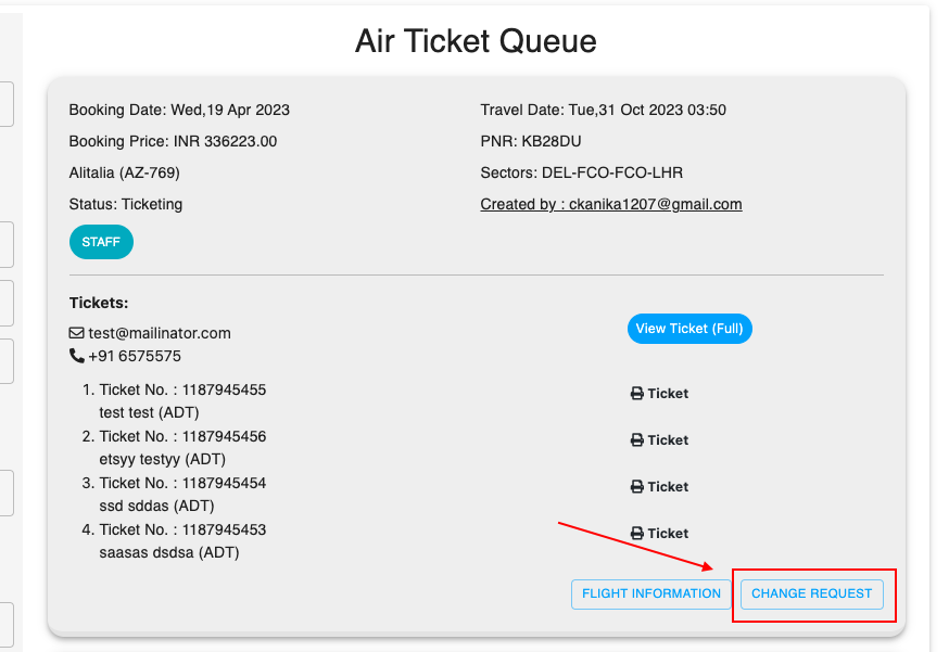 - Go to the ticket queue, and click on the ‘Change Request’ button.